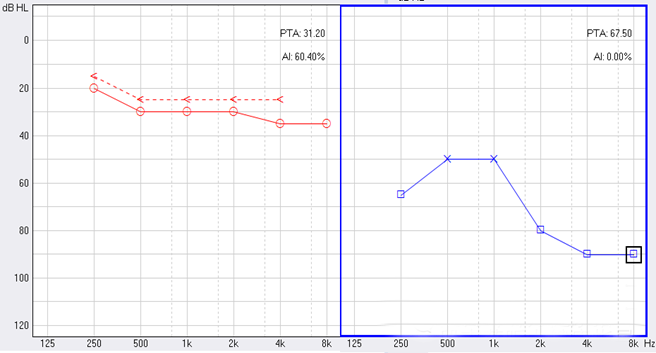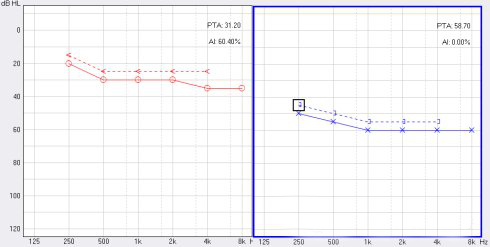 <span style="font-size:16px;"> 純音聽閾測試是聽力學所有測試項目中最基本的一項內容,包括氣導(AC)、骨導(BC)、最舒適閾(MCL)與不舒適閾(UCL)測試。測試結果能夠直接反映患者雙耳的聽力損失程度、性質與動態范圍,還能夠間接反映患者的患病位置、病因與助聽后效果。一般地,整個檢查控制在10分鐘左右,既能全面做完檢查,又不至患者疲勞而影響主觀反應。</span></p><p><span style="font-size:16px;"><br /></span></p><p style="text-align: center;"><span style="font-size:16px;"><img src="/upfiles/201804180138359098.jpg" alt="" /><br /></span></p><p style="text-align: center;"><span style="font-size:16px;"><br /></span></p><p><span style="font-size:16px;"> 純音聽閾測試是最考驗聽力學工作者實際工作能力的一項基本內容:</span></p><p><span style="font-size:16px;"> 1、若患者曾長期暴露于噪聲中,且無其它致耳損因素,很可能在3 kHz或6 kHz出現明顯的下降,聽力曲線呈現“V”字形,所以除了常規的倍頻程頻率外,還要加測這兩個頻率,否則就犧牲了多通道助聽器的意義。</span></p><p><span style="font-size:16px;"> 除了有過噪聲接觸史的患者需要加測半倍頻程外,涉及聲場助聽聽閾評估、賠償等情況都需要加測半倍頻程。</span></p><p><span style="font-size:16px;"> 耳鳴困擾的患者,注意避免與耳鳴聲類似的純音,若還用純音作為刺激聲,患者就會分辨不清,出現假陽性或假陰性。所以,測試者要換成囀音,既有別于耳鳴聲,又具有頻率特異性。</span></p><p><span style="font-size:16px;"> 2、不舒適閾反映患者對大聲的忍耐力,不舒適閾與氣導的差值能顯示患者的動態范圍,指導驗配師調節助聽器的最大輸出。</span></p><p><span style="font-size:16px;"> 不舒適閾測試頻率是否越多越好呢?實際上不是的。測得頻率過多,一會引起患者疲勞或不適,二是沒必要,大多數助聽器的最大輸出是一個整體,不能像調增益和壓縮那樣分通道,所以測多了并無好處,一般測0.5、1、2、4 kHz。</span></p><p><span style="font-size:16px;"> 3、如果兩側聽力有明顯差異,此時就要準備好掩蔽了,分為氣導掩蔽與骨導掩蔽。</span></p><p><span style="font-size:16px;"> (1)氣導掩蔽的判斷有兩個原則,只要符合其中一個原則,就需要重新測差耳氣導。具體做法是:</span></p><p><span style="font-size:16px;"> 測試完雙耳氣導,若發現某一頻率差耳氣導閾值比好耳氣導閾值多40 dB以上就要懷疑有可能是好耳偷聽的,需要給好耳氣導加掩蔽聲;</span></p><p><span style="font-size:16px;"> 測試完雙耳氣導與好耳骨導,若發現某一頻率差耳氣導閾值比好耳骨導閾值多40 dB以上就要懷疑有可能是好耳偷聽的,需要給好耳氣導加掩蔽聲。</span></p><p><span style="font-size:16px;"> 下面為未掩蔽的聽力圖:</span></p><p><span style="font-size:16px;"> </span></p><p><center><img src="/upfiles/201804180139232162.png" width="640" alt="" /></center><center><br /></center></p><p></p><p><span style="font-size:16px;"> 下圖為掩蔽后的左耳真實氣導值:</span></p><p><span style="font-size:16px;"> </span></p><p><center><img src="/upfiles/201804180139383367.png" width="640" alt="" /></center><center><br /></center></p><p></p><p><span style="font-size:16px;"> (2)骨導掩蔽的判斷原則:</span></p><p><span style="font-size:16px;"> 測試完雙耳氣導與好耳骨導,若發現某一頻率差耳氣導閾值比好耳骨導閾值大于等于15 dB就必須予以掩蔽,重測骨導。</span></p><p><span style="font-size:16px;"> 下圖為右耳氣導加掩蔽后左耳骨導的真實值:</span></p><p><span style="font-size:16px;"> </span></p><p><center><img src="/upfiles/201804180140001814.png" width="640" alt="" /></center><center><br /></center></p><p></p><p><span style="font-size:16px;"> 注意:</span></p><p><span style="font-size:16px;"> 掩蔽的規則要按順序適用;</span></p><p><span style="font-size:16px;"> 各頻率根據規則決定是否需要加掩蔽;</span></p><p><span style="font-size:16px;"> 很少需要掩蔽所有頻率,通常氣導掩蔽頻率不應超三個,骨導掩蔽頻率不應超兩個,否則受試者會疲憊不堪。</span></p><p><span style="font-size:16px;"> 醫院測聽的主要目的是診斷和鑒別聽力損失的性質和程度,驗配中心的主要目的是盡可能地幫助患者選擇并調試好助聽器。</span></p><p><span style="font-size:16px;"> 更多詳情請登錄www.xmyuanxu.cn。</span></p>" />