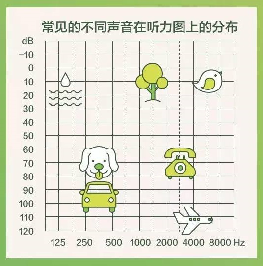 <span style="font-size:16px;"> 今天為大家分享的是聽力圖的相關(guān)知識(shí),聽力圖是記錄純音聽力測試結(jié)果的圖表,具體體現(xiàn)了受試者聽力水平的程度、類型及病變位置。</span></p><p><span style="font-size:16px;"> 1坐標(biāo)軸</span></p><p><span style="font-size:16px;"> 縱坐標(biāo), 即左邊豎著的一列數(shù)字。</span></p><p><span style="font-size:16px;"> 這些是指聲音的強(qiáng)度,就是聲波傳遞到你的位置,耳朵所能感受到的振動(dòng)幅度,以分貝(dB)為單位。</span></p><p><span style="font-size:16px;"> 聲音的強(qiáng)度與聲源的震動(dòng)幅度有關(guān)。</span></p><p><span style="font-size:16px;"> </span></p><center><span style="font-size:16px;"><img alt="" src="/upfiles/201807120232222395.png" width="541" height="285" /></span></center><p></p><p><span style="font-size:16px;"> 聲音的強(qiáng)度也與你的耳朵和聲源的相對位置有關(guān)。</span></p><p><span style="font-size:16px;"> </span></p><center><span style="font-size:16px;"><img alt="" src="/upfiles/201807120232302154.png" width="544" height="282" /></span></center><p></p><p><span style="font-size:16px;"> 想必大家也會(huì)有疑惑,聲音強(qiáng)度為什么會(huì)有負(fù)數(shù)呢?</span></p><p><span style="font-size:16px;"> </span></p><center><span style="font-size:16px;"><img alt="" src="/upfiles/201807120232392977.png" width="535" height="500" /></span></center><p></p><p><span style="font-size:16px;"> 這是因?yàn)榉重惖?0 刻度是聽力零級(jí),簡單地說就是科研人員測了很多聽力正常男女的聽力,以他們能聽到的最小聲音作為聽力零級(jí),是根據(jù)人耳的一般感受能力來制定的。負(fù)分貝的聲音大多數(shù)人類無法感受到,但卻是真實(shí)存在的。</span></p><p><span style="font-size:16px;"> 橫坐標(biāo), 即右邊橫著的一列數(shù)字。</span></p><p><span style="font-size:16px;"> 這些是指聲音的頻率,就是聲波每秒鐘振動(dòng)多少次。</span></p><p><span style="font-size:16px;"> </span></p><center><span style="font-size:16px;"><img alt="" src="/upfiles/201807120232464887.png" width="541" height="238" /></span></center><p></p><p><span style="font-size:16px;"> 振動(dòng)次數(shù)少,頻率低,音調(diào)相對低。</span></p><p><span style="font-size:16px;"> </span></p><center><span style="font-size:16px;"><img alt="" src="/upfiles/201807120232533059.png" width="541" height="235" /></span></center><p></p><p><span style="font-size:16px;"> 聲音頻率以赫茲(Hz)為單位,這里的數(shù)字 2000 就是 2000 赫茲(Hz), 指每秒振動(dòng) 2000 次的聲音。</span></p><p><span style="font-size:16px;"> 我們?nèi)粘I钪谐B牭降沫h(huán)境聲在聽力圖上都可以找到相對應(yīng)的頻率和強(qiáng)度范圍,例如:</span></p><p><span style="font-size:16px;"> </span></p><center><span style="font-size:16px;"><img alt="" src="/upfiles/201807120233012378.png" width="536" height="541" /></span></center><p></p><p><span style="font-size:16px;"> 2言語香蕉圖</span></p><p><span style="font-size:16px;"> </span></p><center><span style="font-size:16px;"><img alt="" src="/upfiles/201807120233093.png" width="509" height="502" /></span></center><p></p><p><span style="font-size:16px;"> 為什么聽力圖上會(huì)有一根香蕉呢?</span></p><p><span style="font-size:16px;"> 人的言語聲也能在聽力圖上找到對應(yīng)的頻率和強(qiáng)度范圍。因?yàn)檫@個(gè)范圍看起來形狀很像一根香蕉,所以我們叫他言語香蕉圖。 當(dāng)我們的聽力進(jìn)入言語香蕉圖,就意味著能夠聽到絕大部分言語聲。</span></p><p><span style="font-size:16px;"> 我們漢語拼音中的聲母、韻母都代表著不同頻率和強(qiáng)度的言語聲。</span></p><p><span style="font-size:16px;"> </span></p><center><span style="font-size:16px;"><img alt="" src="/upfiles/201807120233208159.png" width="541" height="478" /></span></center><p></p><p><span style="font-size:16px;"> 言語香蕉圖只是語言主要分布區(qū)域圖,還有發(fā)音分布在其它區(qū)域。</span></p><p><span style="font-size:16px;"> 3圖形符號(hào)</span></p><p><span style="font-size:16px;"> 那么聽力圖上的兩條線代表的是什么意思?</span></p><p><span style="font-size:16px;"> </span></p><center><span style="font-size:16px;"><img alt="" src="/upfiles/201807120233271199.png" width="508" height="503" /></span></center><p></p><p><span style="font-size:16px;"> </span></p><center><span style="font-size:16px;"><img alt="" src="/upfiles/201807120233364222.png" width="508" height="508" /></span></center><p></p><p><span style="font-size:16px;"> 上圖是左耳聽力測試報(bào)告圖,帶“>”的是骨導(dǎo)線,帶“x”的是氣導(dǎo)線。</span></p><p><span style="font-size:16px;"> 下圖是右耳聽力測試報(bào)告圖,帶“<”的是骨導(dǎo)線,帶“o”的是氣導(dǎo)線。</span></p><p><span style="font-size:16px;"> 一般的聽力圖中藍(lán)色符號(hào)代表左側(cè)聽力,紅色符號(hào)代表右側(cè)聽力。</span></p><p><span style="font-size:16px;"> 左耳右耳</span></p><p><span style="font-size:16px;"> 氣導(dǎo)xo</span></p><p><span style="font-size:16px;"> 骨導(dǎo) > <</span></p><p><span style="font-size:16px;"> 氣導(dǎo)和骨導(dǎo)是我們的耳朵感受聲音的兩個(gè)路徑。</span></p><p><span style="font-size:16px;"> 氣導(dǎo)是空氣傳導(dǎo)路徑,聲音通過耳廓收集,振動(dòng)鼓膜和聽骨鏈,傳遞到內(nèi)耳。</span></p><p><span style="font-size:16px;"> </span></p><center><span style="font-size:16px;"><img alt="" src="/upfiles/20180712023345684.png" width="539" height="350" /></span></center><p></p><p><span style="font-size:16px;"> 骨導(dǎo)是骨傳導(dǎo)路徑,聲音通過頭骨