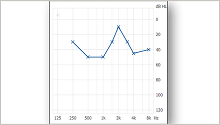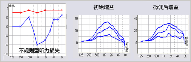 <span style="font-size:16px;"> 我們今天分享的是處理不規(guī)則型聽力損失的驗(yàn)配技巧。</span></p><p><span style="font-size:16px;"> 什么是不規(guī)則型聽力損失?</span></p><p><span style="font-size:16px;"> 不規(guī)則型聽力損失,是指聽力圖上曲線彎彎曲曲,毫無規(guī)則的聽力損失,如下圖。</span></p><center><span style="font-size:16px;"><img alt="" src="/upfiles/201808290214166730.png" width="440" height="250" /></span></center><p></p><p><span style="font-size:16px;"> 它屬于復(fù)雜案例的一種,通常,我們?cè)隍?yàn)配過程中需要耗費(fèi)大量精力,反反復(fù)復(fù)調(diào)試可能也不一定效果好。不規(guī)則型聽力損失在日常的驗(yàn)配中不如陡降型聽力損失常見,可查閱的臨床試驗(yàn)和深入研究都很少。</span></p><p><span style="font-size:16px;"> 今天介紹的調(diào)試技巧主要是日常驗(yàn)配的經(jīng)驗(yàn),先來看看調(diào)試的基礎(chǔ)知識(shí)點(diǎn)。</span></p><p><span style="font-size:16px;"> 每個(gè)調(diào)試技巧都有它特有的理論基礎(chǔ),了解了這個(gè)基礎(chǔ),我們就會(huì)發(fā)現(xiàn),調(diào)試很簡(jiǎn)單,這也再一次體現(xiàn)了打好基礎(chǔ)的重要性。</span></p><p><span style="font-size:16px;"> 根據(jù)研究表明,不規(guī)則型聽力損失的弱聽人士,其MCL(舒適閾)曲線與UCL(不舒適閾)曲線通常比聽閾曲線更加平坦,如下圖所示為HTL(聽閾)曲線、MCL曲線和UCL曲線。</span></p><center><span style="font-size:16px;"><img alt="" src="/upfiles/201808290214226016.png" width="440" height="250" /></span></center><p></p><p><span style="font-size:16px;"> 這個(gè)知識(shí)點(diǎn)不僅僅適用于不規(guī)則型聽力損失,絕大部分聽力損失都是如此,包括陡降型聽力損失、上升型聽力損失等等。引起這種情況的原因,我們可以追溯到一些基本的心理聲學(xué)原理。</span></p><p><span style="font-size:16px;"> 首先我們先來看看什么是舒適閾MCL與不適閾UCL,它們有個(gè)共同的特性就是都與響度有關(guān)。通俗來說,MCL是我們感覺到聲音聽起來,既清楚又舒服的響度;UCL則是我們聽到聲音覺得震耳、難受時(shí)的響度。</span></p><p><span style="font-size:16px;"> 接下來我們?cè)賮砜匆豢吹软懬€。等響曲線簡(jiǎn)單來說,是指聽力正常者感覺響度相同時(shí)的純音聲壓級(jí)與頻率關(guān)系的曲線。</span></p><p><span style="font-size:16px;"> 下圖為等響曲線圖,橫坐標(biāo)是頻率,縱坐標(biāo)是聲壓級(jí)。</span></p><center><span style="font-size:16px;"><img alt="" src="/upfiles/201808290214275568.png" width="440" height="250" /></span></center><p></p><p><span style="font-size:16px;"> 我們看到,圖中每條曲線上的點(diǎn)都對(duì)應(yīng)不同頻率和不同聲壓級(jí),但是,我們?nèi)硕杏X到的響度是一樣的。每條曲線上注有一個(gè)數(shù)字,單位是方,意思是該條曲線上的任一點(diǎn)響度都一樣。</span></p><p><span style="font-size:16px;"> 從上圖中,我們可以發(fā)現(xiàn),響度越大,即圖中越靠上方的等響曲線,曲線越平坦。</span></p><p><span style="font-size:16px;"> 換句話說,在高響度的情況下,不同頻率的聲音在相同聲壓級(jí)時(shí)聽上去一樣響。這就是我們MCL曲線和UCL曲線比HTL曲線都平坦的原因之一。這個(gè)知識(shí)點(diǎn)是后面調(diào)試技巧的基礎(chǔ)。</span></p><p><span style="font-size:16px;"> 接下來我們說驗(yàn)配技巧:</span></p><p><span style="font-size:16px;"> 1、驗(yàn)配處方公式的選擇</span></p><p><span style="font-size:16px;"> 這里我們主要說說常用的兩大經(jīng)典公式,一個(gè)是DSL i/o公式(或DSL v5,后文只用DSL i/o表示),一個(gè)是NAL-NL2公式。</span></p><p><span style="font-size:16px;"> DSL i/o 是一種基于閾值考慮的公式,它將聽閾HTL與不舒適閾UCL(如未測(cè)量則自動(dòng)估算)都考慮進(jìn)去,并試圖將所有的聲音都“安排在”弱聽人士剩余的聽覺動(dòng)態(tài)范圍內(nèi),保證響度的正常化。</span></p><p><span style="font-size:16px;"> 也正因此,你可能會(huì)發(fā)現(xiàn),它所提供的各頻率增益之間差別較大,可能這里只有幾分貝的增益,附近頻率卻有幾十分貝的增益。</span></p><p><span style="font-size:16px;"> NAL-NL2則與DSL不同,它會(huì)預(yù)測(cè)患者的響度變化,考慮到MCL曲線趨于平坦,于是乎,最后的增益也是比較平坦的。基于此,為保證其增益相對(duì)平衡,甚至有些地方會(huì)達(dá)不到聽力損失所需增益,或超出所需增益。兩公式的增益補(bǔ)償如下圖所示。</span></p><center><span style="font-size:16px;"><img alt="" src="/upfiles/201808290214323691.png" width="440" height="250" /></span></center><p></p><p><span style="font-size:16px;"> 大量的驗(yàn)配結(jié)果發(fā)現(xiàn),NAL -NL2 公式在處理不規(guī)則聽力損失時(shí),有更好的效果。</span></p><p><span style="font-size:16px;"> 2、增益微調(diào)</span></p><p><span style="font-size:16px;"> 在使用NAL-NL2公式后,進(jìn)行進(jìn)一步微調(diào)時(shí),我們建議可以適當(dāng)減少500Hz-1000Hz的增益,適當(dāng)增加2000Hz處的增益。</span></p><p><span style="font-size:16px;"> 這是考慮到2000Hz頻率附近的有用信息非常多,而低頻信息較少,適當(dāng)增加2000Hz處的增益可以讓弱聽人士聽到更多有用信息。 微調(diào)后,我們發(fā)現(xiàn),弱聽人士并不會(huì)覺得中高頻增益太高,而低頻增益太少,并且也沒有出現(xiàn)一些與之相關(guān)的不適反應(yīng)。</span></p><p><span style="font-size:16px;"> 
