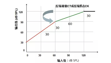 顧名思義,壓縮就是把超過一定強度的聲音減小至聽損患者縮小的殘余聽覺動態(tài)范圍里。相較于線性放大,壓縮可以有效達到“小聲聽得見,大聲受得了”的要求,尤其適用于感音神經(jīng)性患者。</p><p> 壓縮參數(shù)主要有三個:壓縮拐點/壓縮閾值(CK/CT)、壓縮比(CR)與壓縮時間(起效時間AT,釋放時間RT)。下圖:橫坐標代表輸入級,即未經(jīng)助聽器放大的聲音;縱坐標代表輸出級,即放大后的聲音。輸入與輸出的關(guān)系:輸出級=輸入級+增益,亦可表示:放大后的聲音=放大前的聲音+放大量。有了這個基礎(chǔ),我們就可以清楚地理解這兩個參數(shù)的含義并進行調(diào)節(jié)。</p><p> 1、壓縮拐點(CK):線性放大與壓縮放大的臨界輸入級,此處為60 dB SPL,即輸入聲強度在60 dB SPL以下時為線性放大,超過60 dB SPL為壓縮放大。①紅線的輸入級范圍為0~60 dB,這段的聲音為線性放大,隨意找一個輸入級,用它對應(yīng)的輸出級減去輸入級,得出線性放大的增益為30 dB;②當輸入級大于60 dB時,綠色曲線為壓縮放大,輸出與對應(yīng)輸入的差值不再是30 dB,而是隨著輸入級增加,增益逐漸減小;③當輸出達到最大輸出限制時,輸出不再增大,保持在最大輸出限制位置。</p><p> </p><center><img alt="" src="/upfiles/201904180248249754.png" width="440" height="250" /></center><p></p><p> 2、壓縮比(CR):輸入級差值與輸出級差值的比值。上圖中線性狀態(tài)時壓縮比為1:1,可以找兩對數(shù)值,(輸入60-輸入0)/(輸出90-輸出30)=60/60=1:1。壓縮狀態(tài)時壓縮比為2:1,同樣可以找兩對數(shù)值,(輸入120-輸入60)/(輸出120-輸出90)=60/30=2:1。</p><p> 3、壓縮方式(CM):由于起效時間(AT)與釋放時間(RT)的不同組合構(gòu)成不同的壓縮方式。</p><p> 助聽器由線性變換到壓縮時所需的穩(wěn)定時間為起效時間。起效時間短,說明對大聲壓縮及時,不會造成聽力傷害;起效時間長,說明對大聲壓縮緩慢,有可能短暫感覺刺耳,但可以最大程度還原小聲與大聲的強度差異感。</p><p> 助聽器由壓縮回到線性時所需的穩(wěn)定時間為釋放時間。釋放時間短,說明對小聲及時線性放大,避免小聲聽不見;釋放時間長,說明對小聲還在壓縮,放大不及時,有可能小聲聽不見,但可以最大程度還原大聲和小聲的強度差異感。</p><p> </p><center><img alt="" src="/upfiles/201904180248302960.png" width="440" height="250" /></center><p></p><p> 我們可以做個比喻來了解壓縮的概念。假使你在高速路上,突然前方出現(xiàn)一個大大的警示牌,提示有事故發(fā)生,這時你需要迅速踩剎車以防撞擊。越早踩剎車相當于越早壓縮(壓縮拐點越小),剎車的力度越大相當于壓縮比越大,開始剎車至?xí)r速降至安全時速所需時間相當于起效時間,過了事故點踩油門,車速恢復(fù)至高速所需時間相當于釋放時間。</p><p> 壓縮是為了保護人們聽覺系統(tǒng)免受瞬間或持續(xù)中、大強度聲音的刺激,同時又能有效放大各種小聲的基本技術(shù)手段,可以使小聲、中等聲和大聲無一遺漏地進入聽障患者縮小的聽覺動態(tài)范圍中。</p><p> 恰當?shù)膲嚎s拐點與壓縮比滿足了聽障患者達到“小聲聽得見、大聲受得了”的要求,而壓縮的起效時間與釋放時間設(shè)定需要考慮聽障患者個性化的聆聽喜好。</p><p> 起效時間與釋放時間都短,優(yōu)點是小聲放大及時、大聲壓縮及時,即小聲聽得到大聲不覺吵,缺點是大小聲強度差異感不大;起效時間短釋放時間長,優(yōu)點是大小聲強度差異感真實,音節(jié)間噪聲小,缺點是有可能小聲放大不足。</p><p> 事實上,各企業(yè)的助聽器軟件往往可以直接調(diào)節(jié)輕聲增益、中等聲增益、大聲增益與主增益而間接控制壓縮參數(shù),有的軟件可見一套CK/CR,有的軟件可見兩套CK/CR。有些軟件會自動默認為自適應(yīng)壓縮方式,能夠根據(jù)聲音強度差異自動調(diào)整。</p><p> 下圖匯總了對不同強度聲音不適的解決辦法,供大家參考。</p><p> </p><center><img alt="" src="/upfiles/201904180248355643.png" width="582" height="219" /></center><p></p><p> 更多詳情請登錄聽覺有道助聽器www.xmyuanxu.cn</p>" />