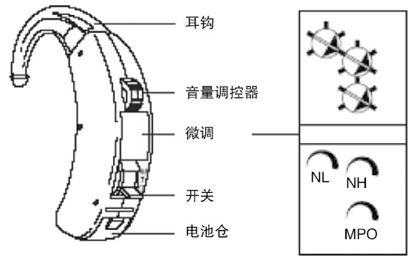 微調控制器:控制器的作用是調節放大器的參數,使得最終輸出聲音符合每位弱聽人士的放大需求。控制器可以是機械的電位器(用螺絲刀調節),也可以是寄存器(通過電腦調節參數)。微調是選配過程中最重要的部分。