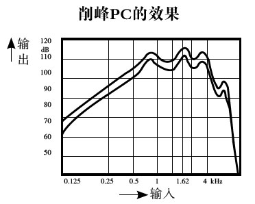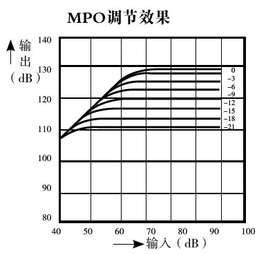 3)MPO—最大輸出限制:為了防止聲輸出過高超過弱聽人士的不適閾,大多數助聽器都有最大聲輸出限幅裝置,如削峰PC、自動增益控制AGC電路等。削峰電路就是把信號中超過某一限度的峰值部分削去,但削峰后輸出有失真,且信噪比小;AGC電路是較先進的限幅控制電路,它把大于不舒適閾的輸出聲壓縮后再輸出,因此不會帶來失真,但是壓縮需要起效時間,對于特別敏感的弱聽人士,有時采用削峰更安全。