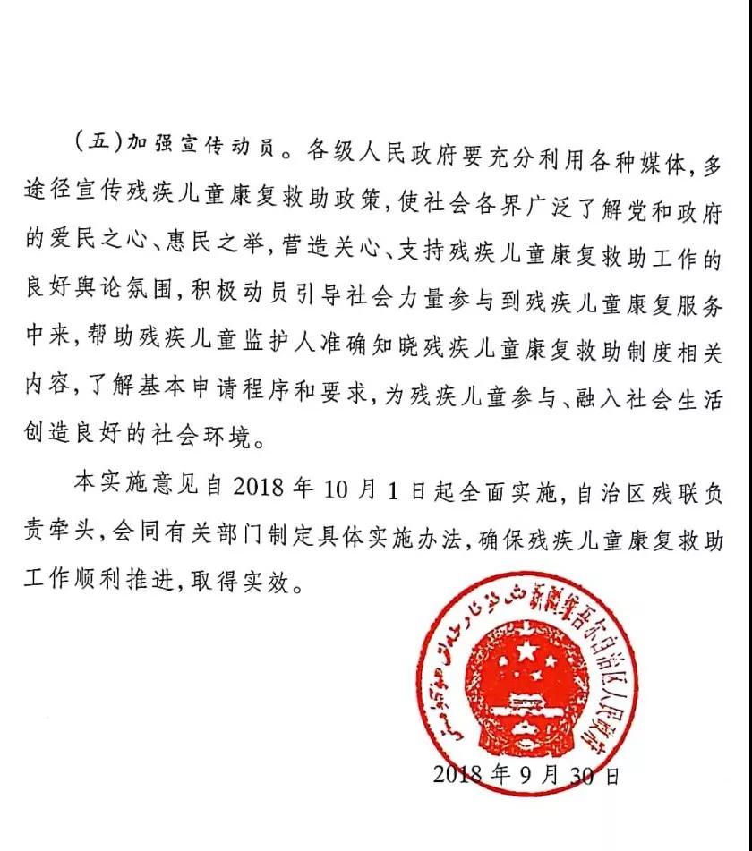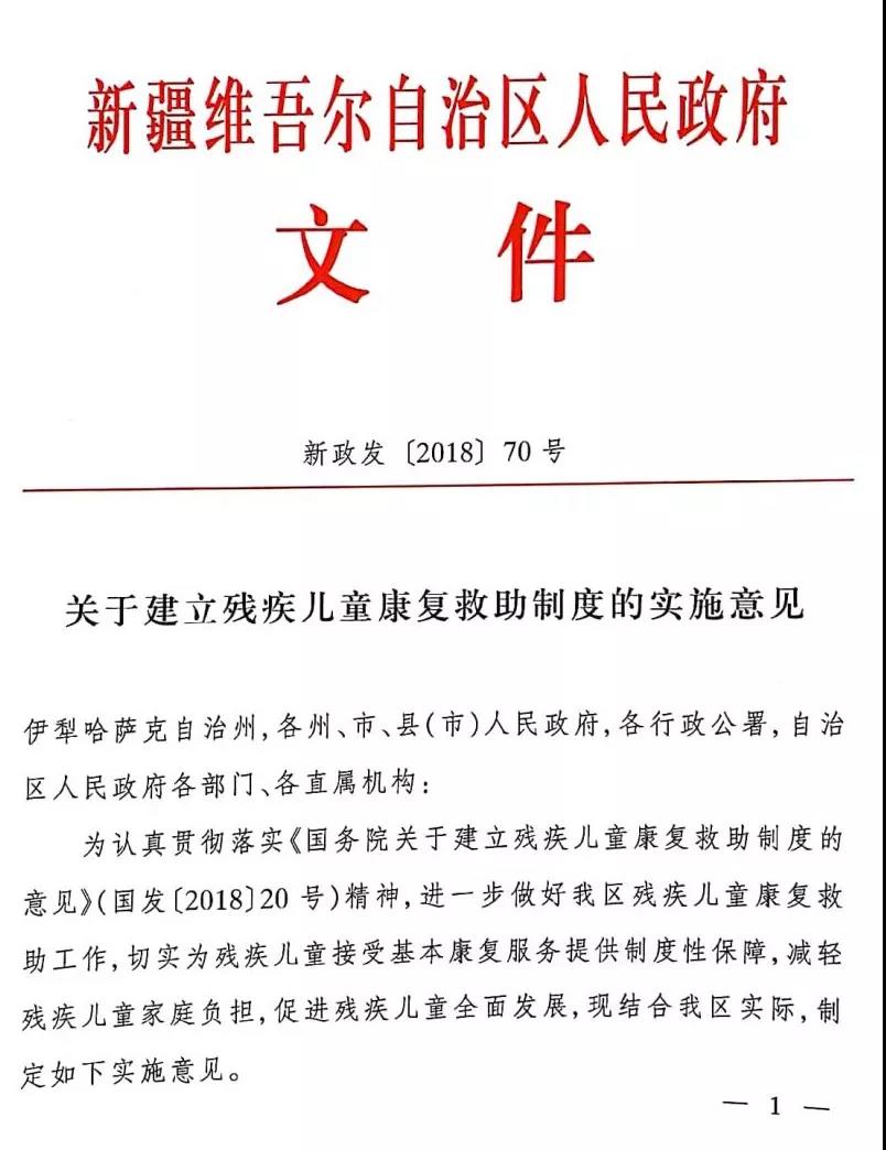 新疆維吾爾自治區(qū)人民政府關(guān)于建立殘疾兒童康復救助制度的實施方案