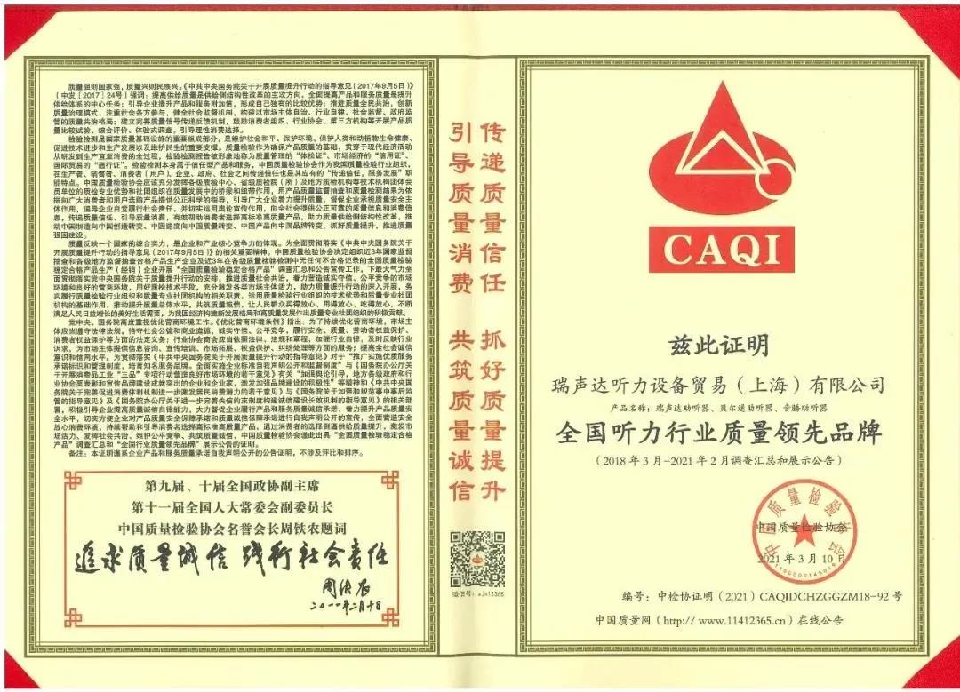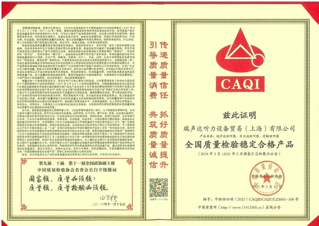 <span style="white-space:pre"> </span>質(zhì)量是企業(yè)和產(chǎn)業(yè)核心競(jìng)爭(zhēng)力的體現(xiàn)。<br /><br /> 作為對(duì)貝爾通助聽(tīng)器產(chǎn)品質(zhì)量和服務(wù)的肯定,2021年中國(guó)質(zhì)量檢驗(yàn)協(xié)會(huì)再次向貝爾通助聽(tīng)器頒發(fā)了三項(xiàng)榮譽(yù)證書(shū),以期能引導(dǎo)用戶選擇高標(biāo)準(zhǔn)高質(zhì)量的產(chǎn)品,傳遞質(zhì)量信任,優(yōu)化消費(fèi)環(huán)境。<br /><br /> 這三項(xiàng)榮譽(yù)包括“全國(guó)產(chǎn)品和服務(wù)質(zhì)量誠(chéng)信示范企業(yè)”“全國(guó)聽(tīng)力行業(yè)質(zhì)量領(lǐng)先品牌”“全國(guó)質(zhì)量檢驗(yàn)穩(wěn)定合格產(chǎn)品”。<br /><br /> 除了貝爾通助聽(tīng)器,瑞聲達(dá)和音騰助聽(tīng)器亦同獲此譽(yù)。<br /><br /> CAQI<br /><br /> 全國(guó)產(chǎn)品和服務(wù)質(zhì)量誠(chéng)信示范企業(yè)<br /><br /> 全國(guó)聽(tīng)力行業(yè)質(zhì)量領(lǐng)先品牌<br /></span><p style="text-align: left;"><span style="font-size:16px;"> 全國(guó)質(zhì)量檢驗(yàn)穩(wěn)定合格產(chǎn)品</span></p><p style="text-align: center;"><img src="/upfiles/202103160512466507.jpg" width="640" alt="" /> <img src="/upfiles/202103160512463998.jpg" width="640" alt="" /> <img src="/upfiles/202103160512465078.jpg" width="640" alt="" /><br /></p><p style="text-align: center;"><br /></p>" />